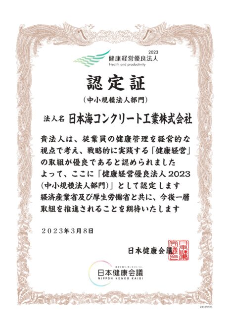 健康経営優良法人認定制度において、「健康経営優良法人2023(中小規模法人部門)」に認定されました。